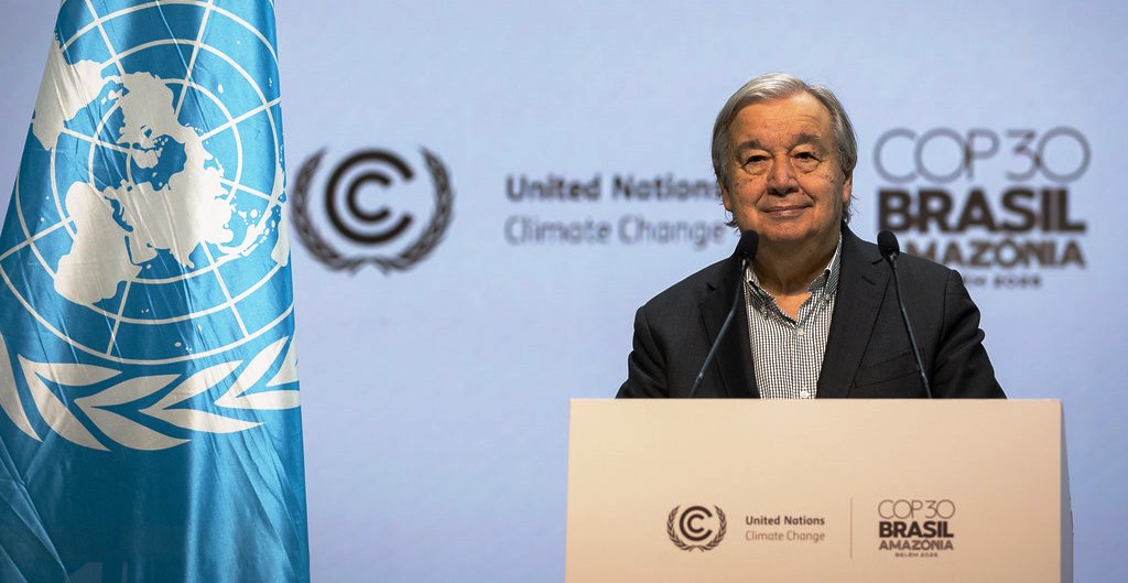 UN Secretary General António Guterres addressing a press conference at COP30. PHOTO/UN.