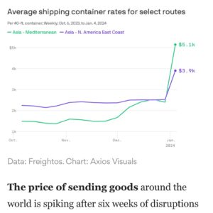 Average shipping container rates for select routes. PHOTO/AXIOS